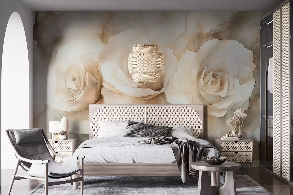 Тапете за зид Прелепе руже, акварел стил, беж боје, боемски бр. w02492