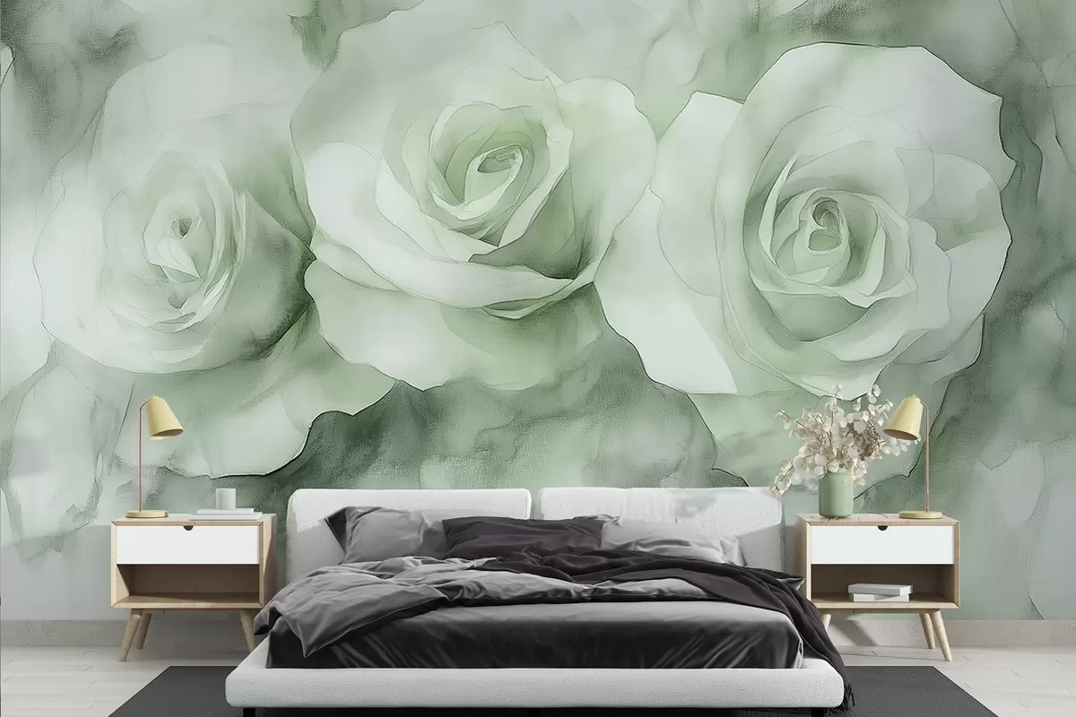 Тапете за зид Прелепе руже, акварел стил, зелене боје, боемски бр. w02492v2