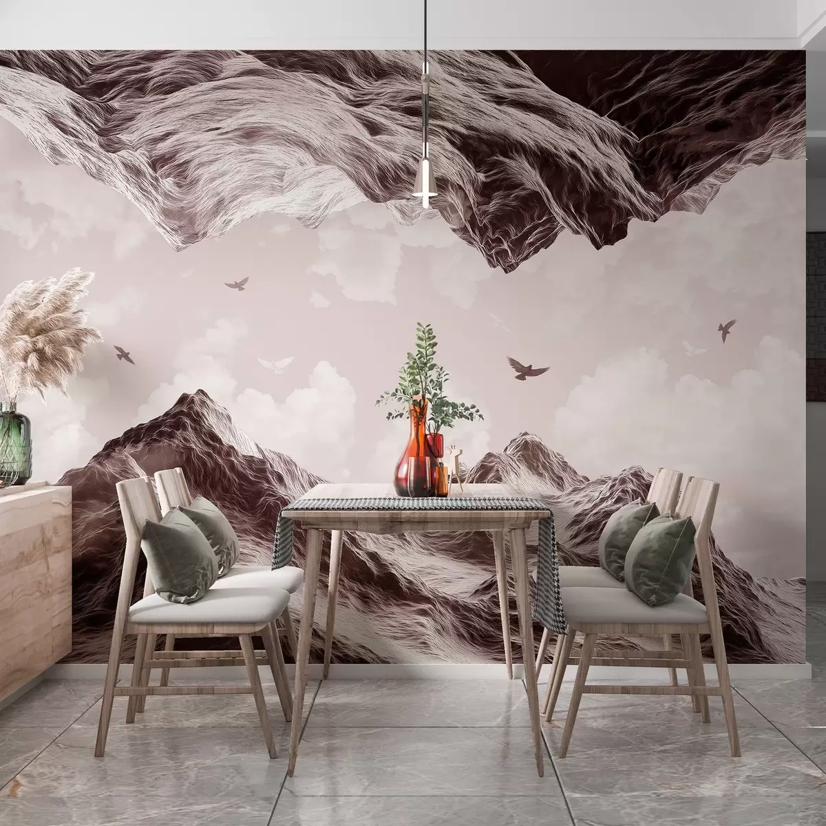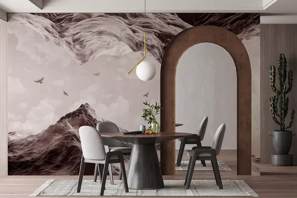 Тапете за зид Планински пејзаж, реализам, летеће птице, природа, облаци, смеђе боје бр. w02514v2