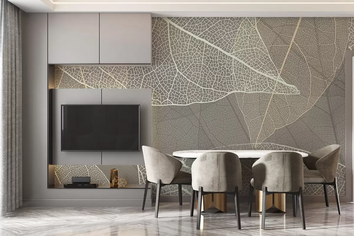 Тапете за зид крупни план листова са жилама у топлим сивим тоновима бр. w02520v2