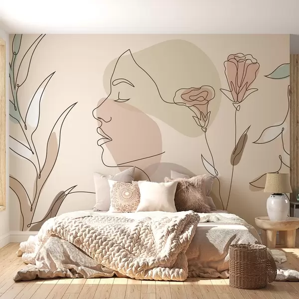 Тапете за зид Девојка са линијама, шареним цвећем бр. w02543
