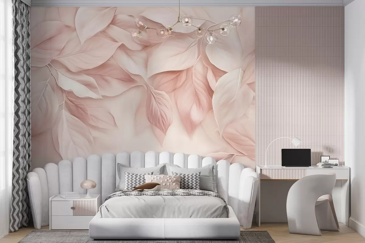 Тапете за зид нежно ружичасто лишће за спаваћу собу девојке бр. w02549