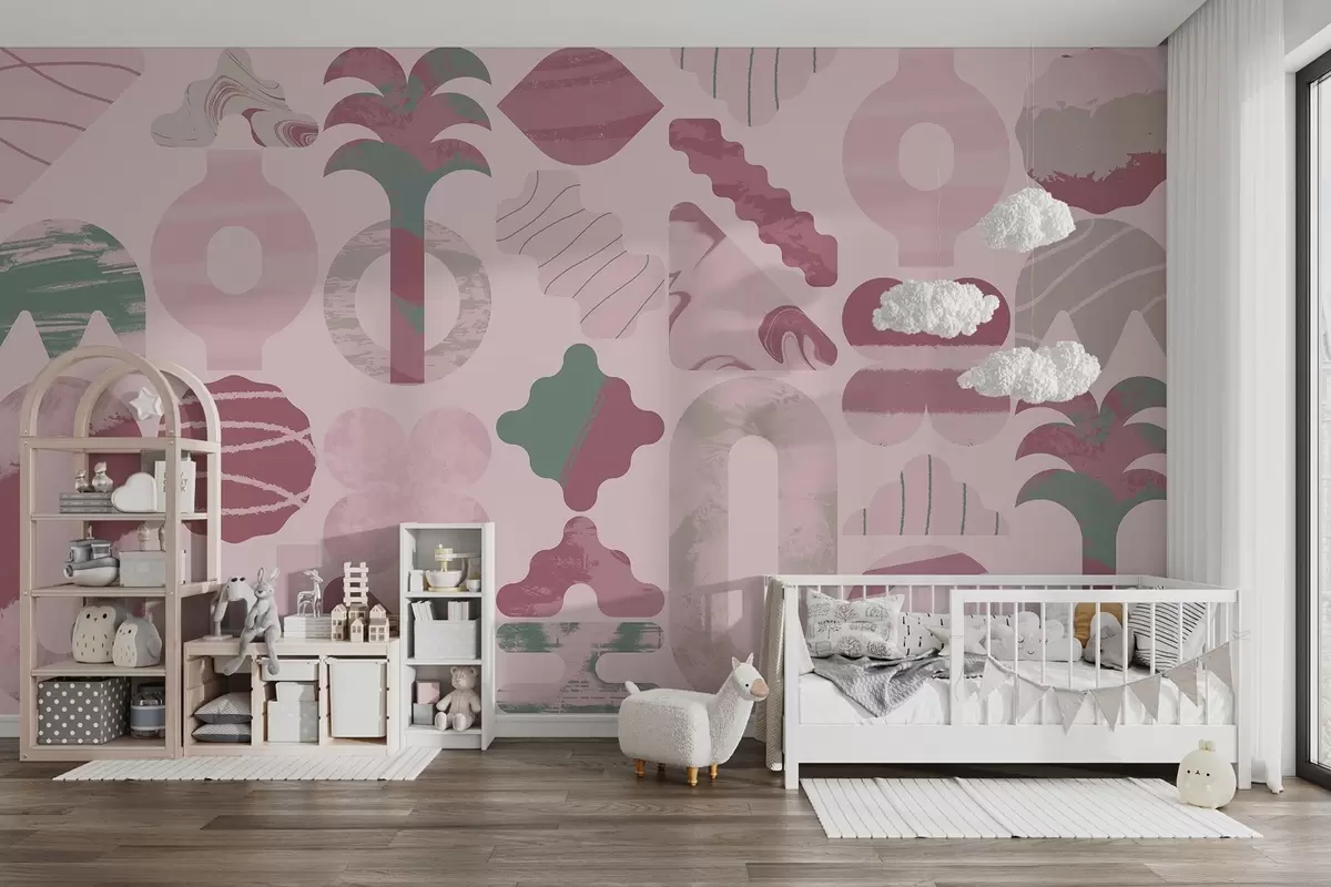Тапете за зид разних занимљивих облика, модерне геометрије у розе бојама бр. w02550