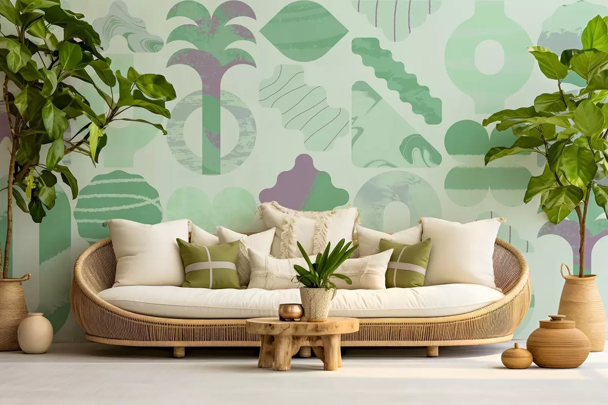 Тапете за зид разних занимљивих облика, модерне геометрије у зеленим бојама бр. w02550v2