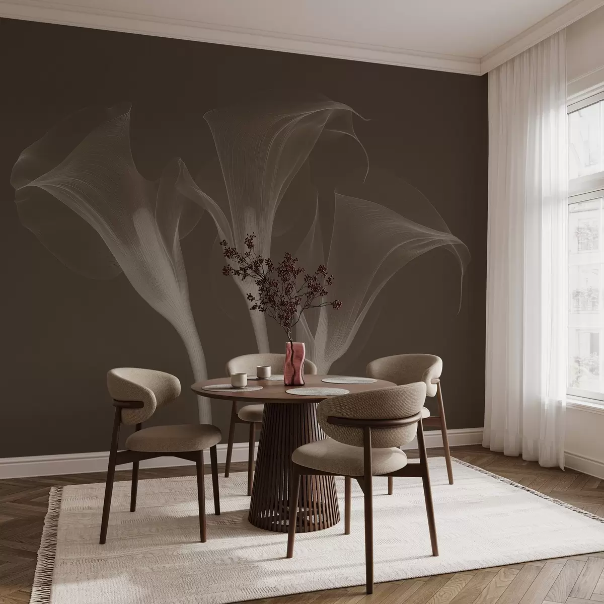 Тапете за зид прозрачно прозирно цвеће Зантедесцхиа на тамној позадини бр. w02632v1