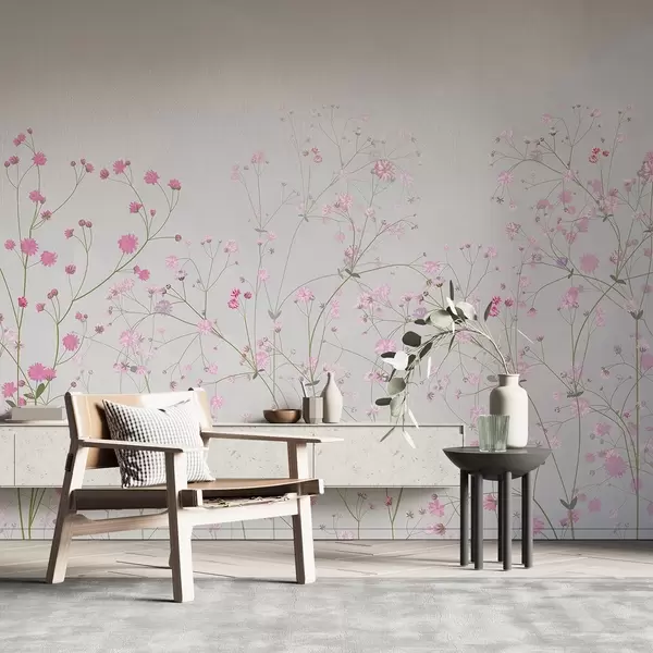 Тапете за зид мало дивље цвеће на сивој позадини бр. w02659