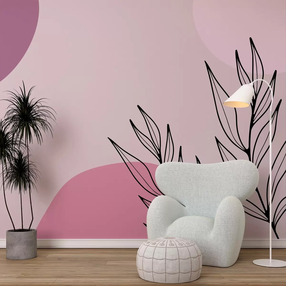 Тапете за зид ружичаста апстракција са листовима бр. w02666