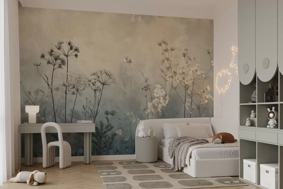 Тапете за зид тапете у еко стилу са дивљим цвећем и биљкама на текстурираној позадини бр. w02685