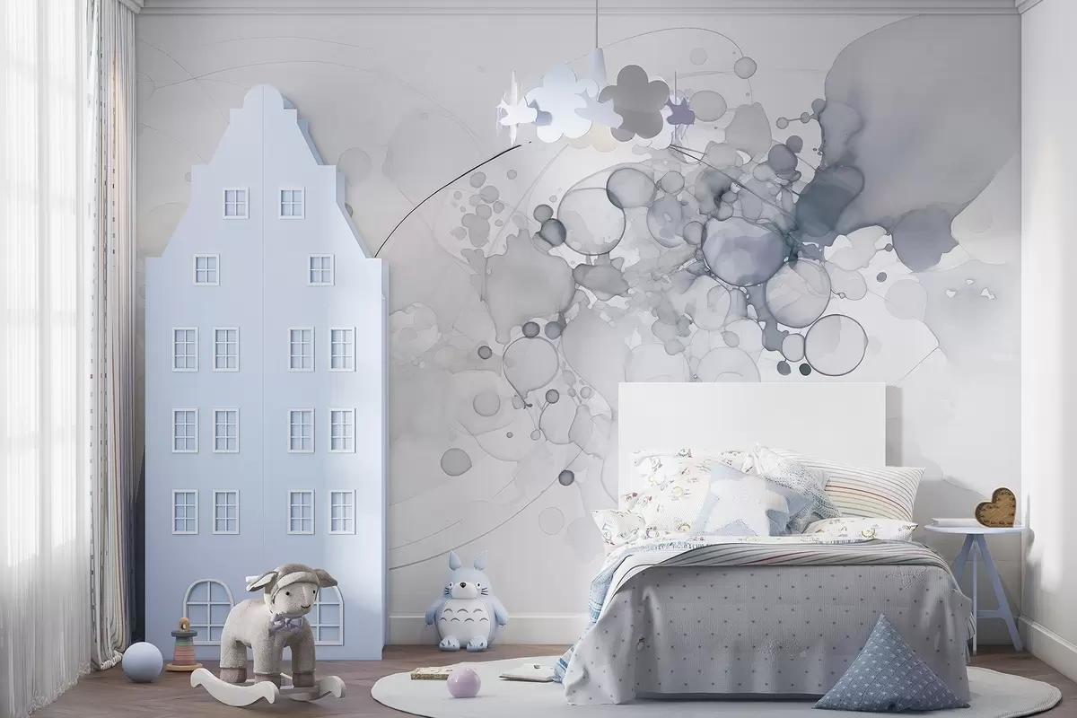 Тапете за зид Апстрактна флуидна уметност, стил акварела, сиве боје бр. w02746v1