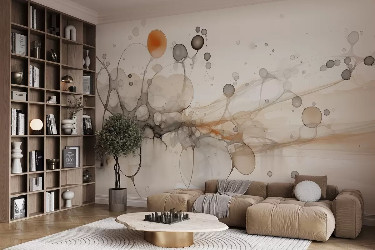 Тапете за зид Апстракција, минимализам, уметност мастила, флуидне, беж и сиве боје бр. w02750
