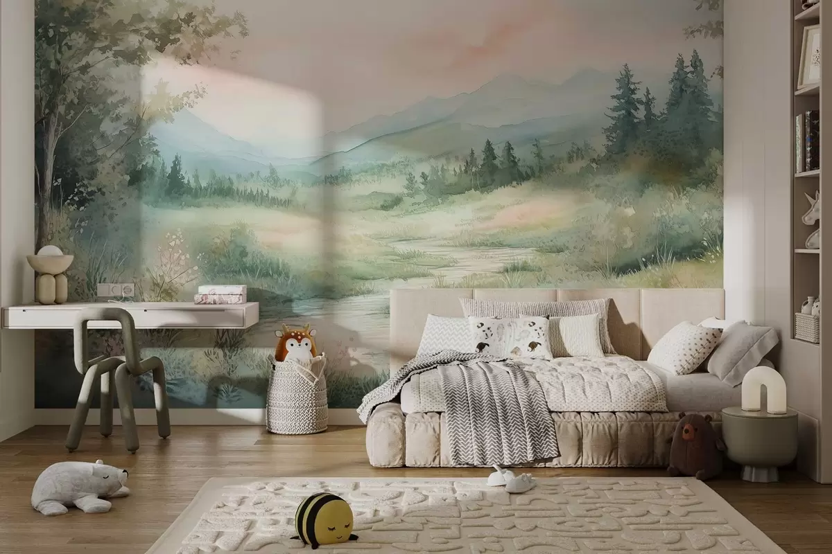 Тапете за зид акварел пејзаж са стазом и планинама бр. w02764