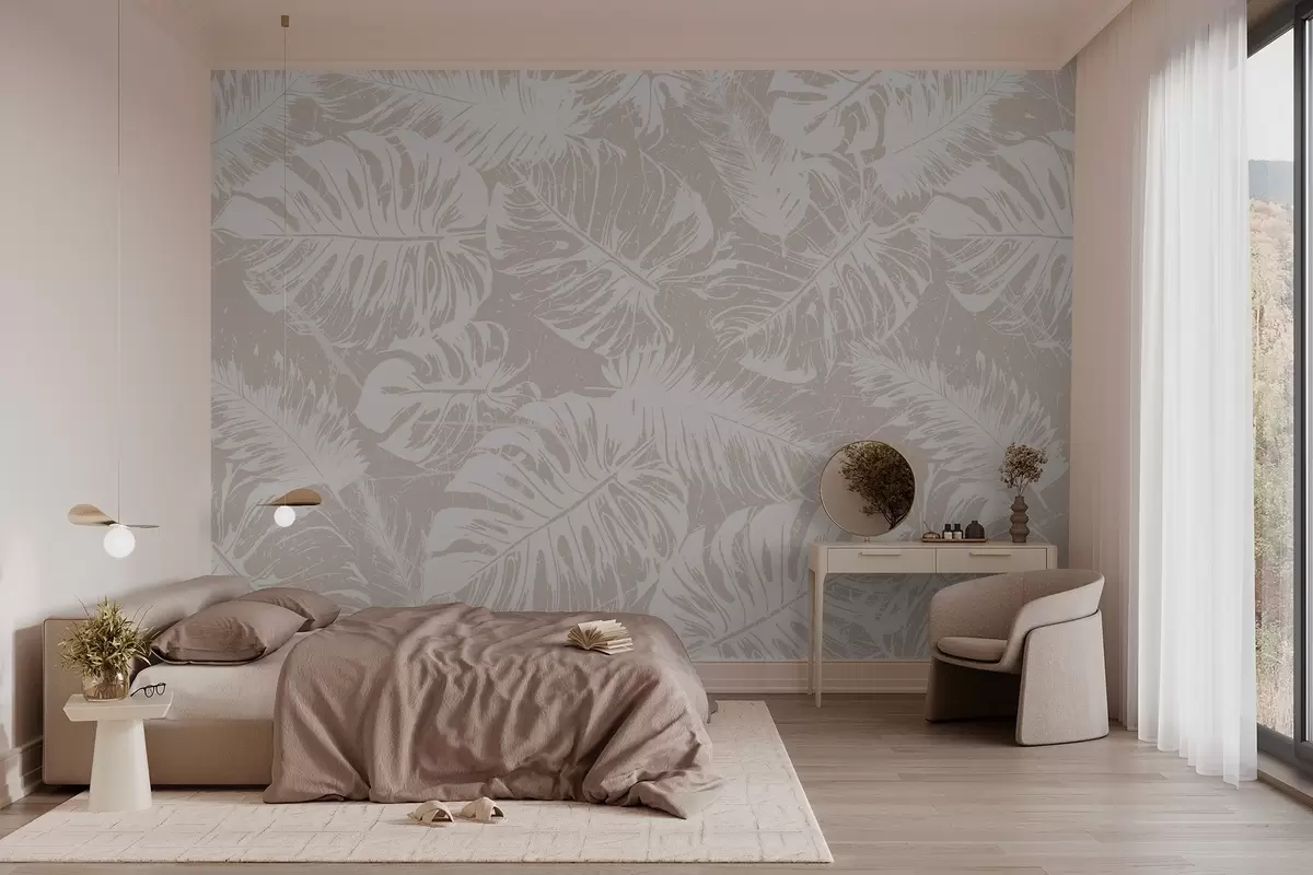 Тапете за зид Силуете белог лишћа на текстурираној позадини бр. w02895v1