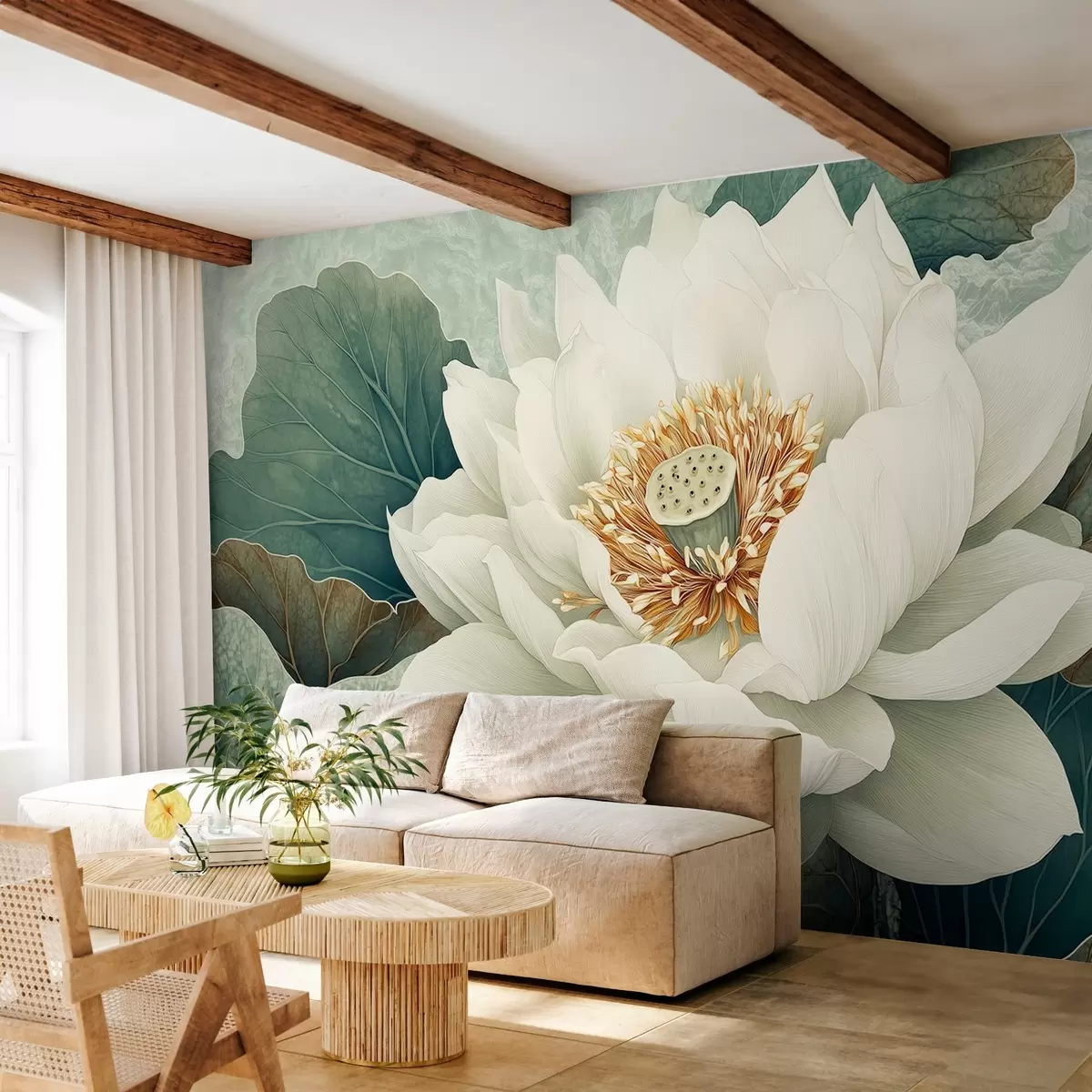 Тапете за зид Велики локвањ на позадини лишћа бр. w02905