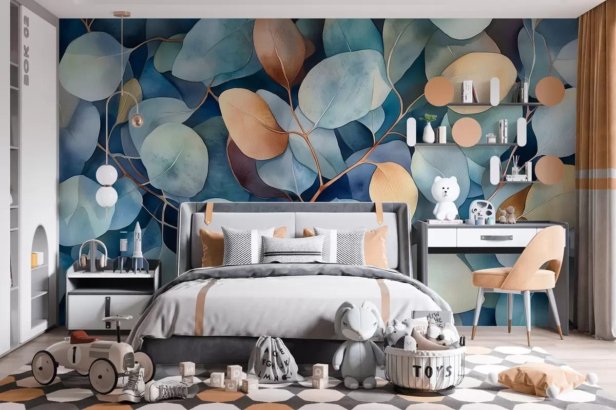 Тапете за зид Прелепи листови еукалиптуса, цветни узорак, цртеж у акварелу бр. w02939