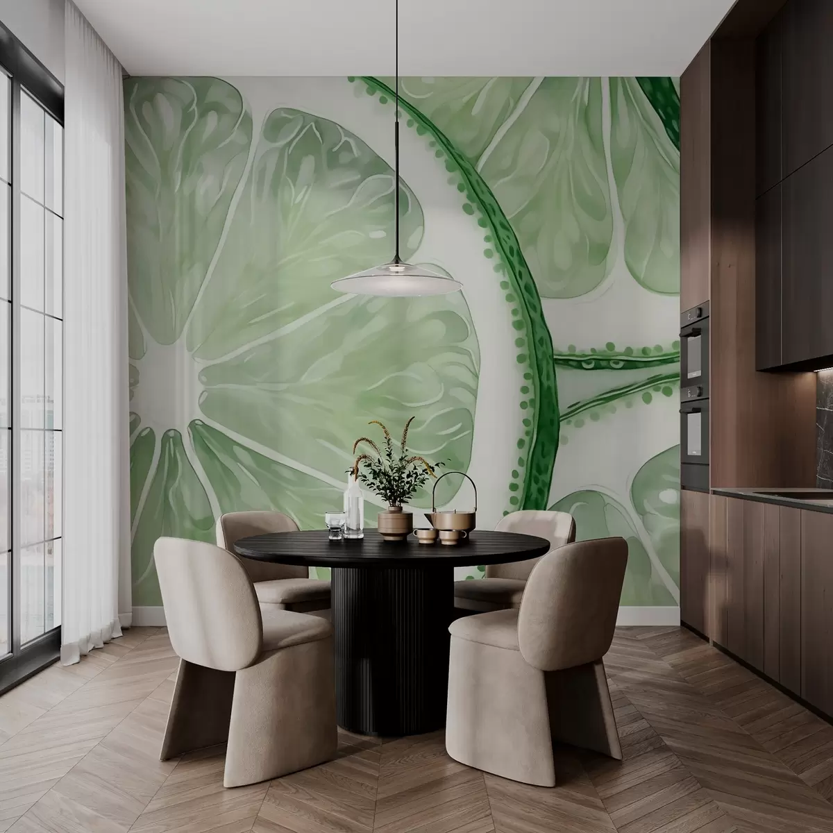 Тапете за зид Кругови цитруса имитирају зелену нијансу акварела бр. w03026