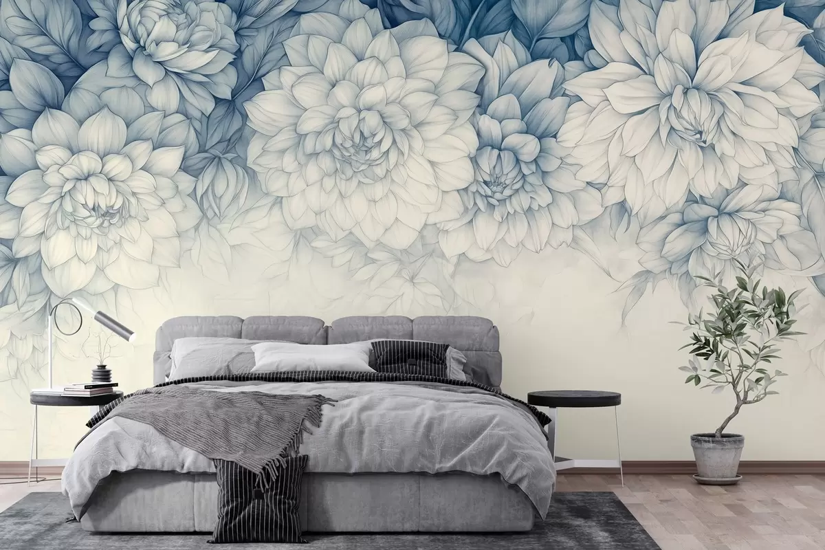 Тапете за зид бујне монохромне хризантеме које висе са врха бр. w03110