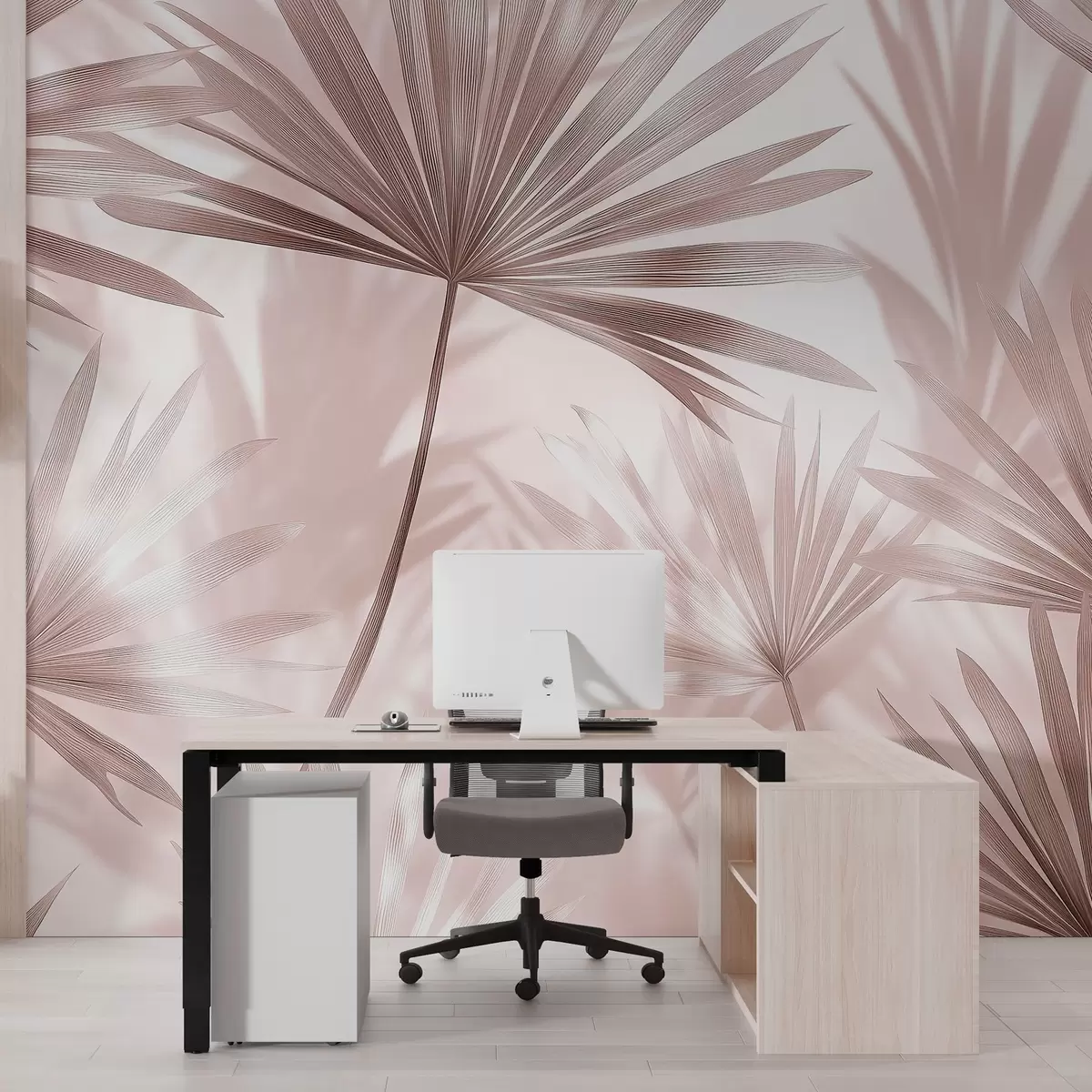 Тапете за зид Палмино лишће, цветни узорак, минимализам, тропске, беж боје бр. w03152v3