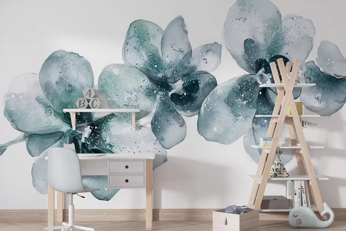 Тапете за зид Цвеће орхидеја у акварелу, боје аквамарина бр. w03163v1