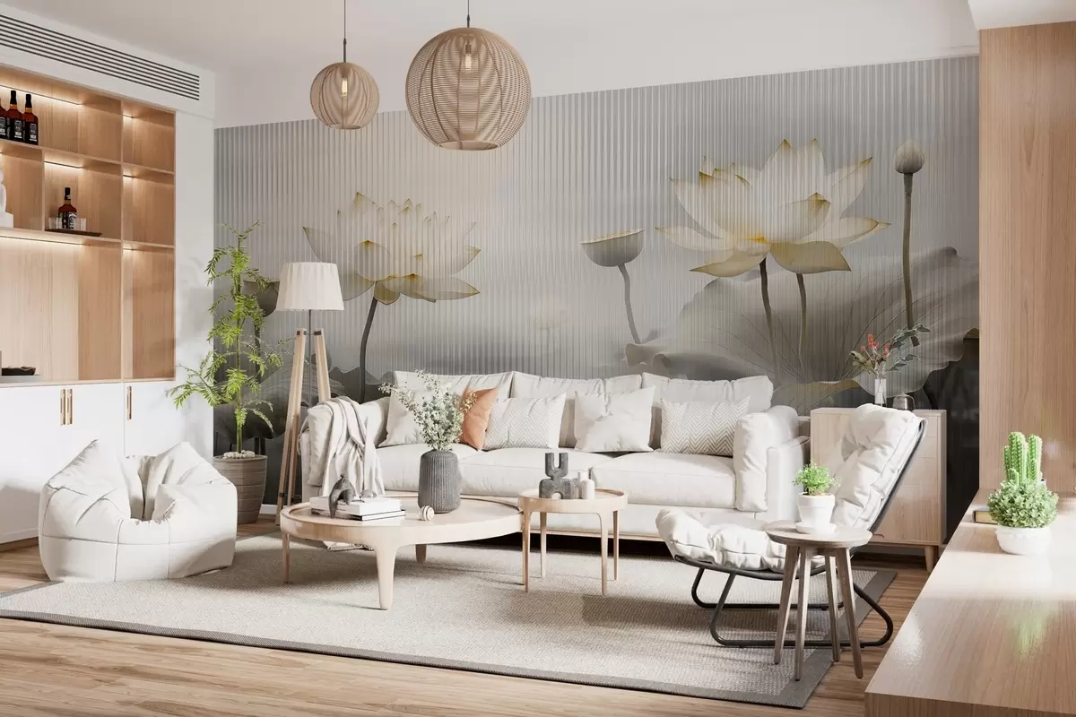 Тапете за зид Поглед на лотосове иза стакла бр. w03200v2