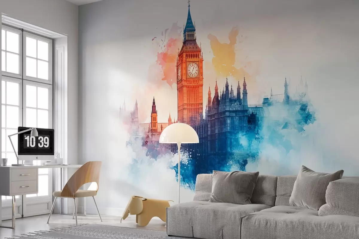 Тапете за зид акварел цртеж Биг Бена на светлој позадини бр. w03287