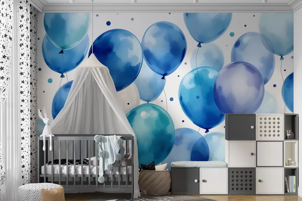Тапете за зид Плави ваздушни балони осликани акварелом бр. w03330