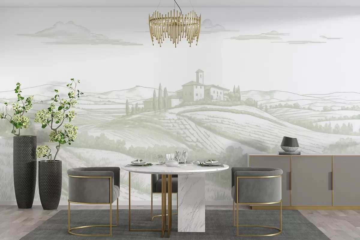 Тапете за зид Тоскански пејзажи, Италија, виногради, природа, стари замак, зелене боје бр. w03349v2