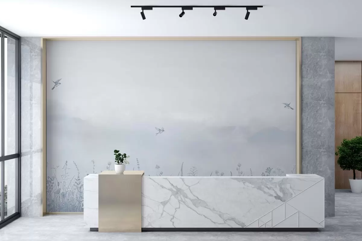 Тапете за зид Дивље цвеће и магловито небо у плавим тоновима бр. w03391v1
