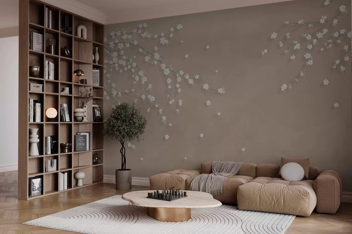 Тапете за зид Цветајућа грана на позадини грунге зида бр. w03393