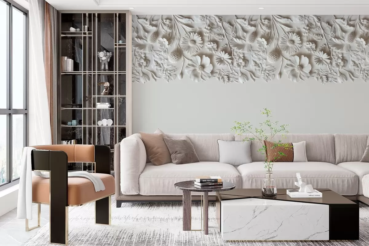 Тапете за зид Имитација бас-рељефа цвећа на врху у млечној боји бр. w03398v1