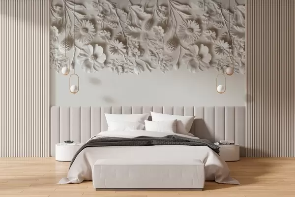 Тапете за зид Имитација бас-рељефа цвећа на врху у млечној боји бр. w03398v1