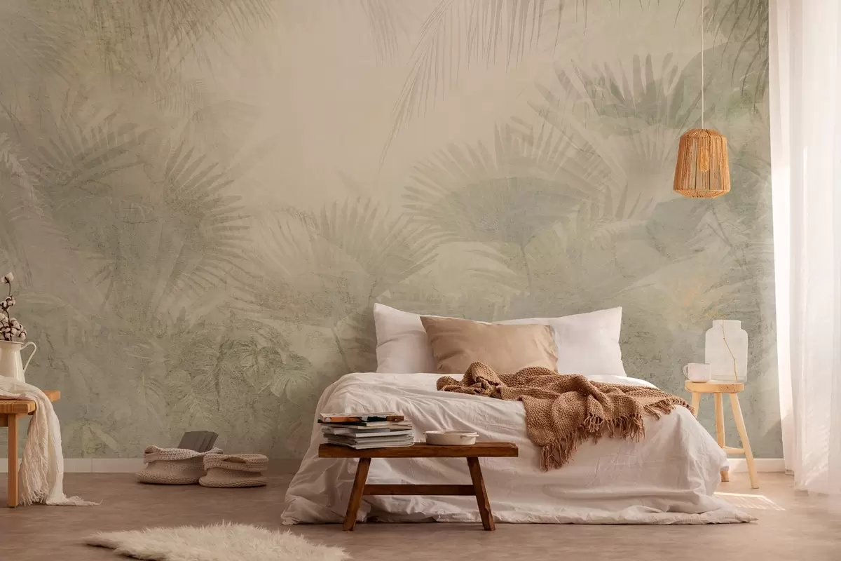 Тапете за зид Текстуриране тропске ретро тапете у беж тоновима бр. w03399