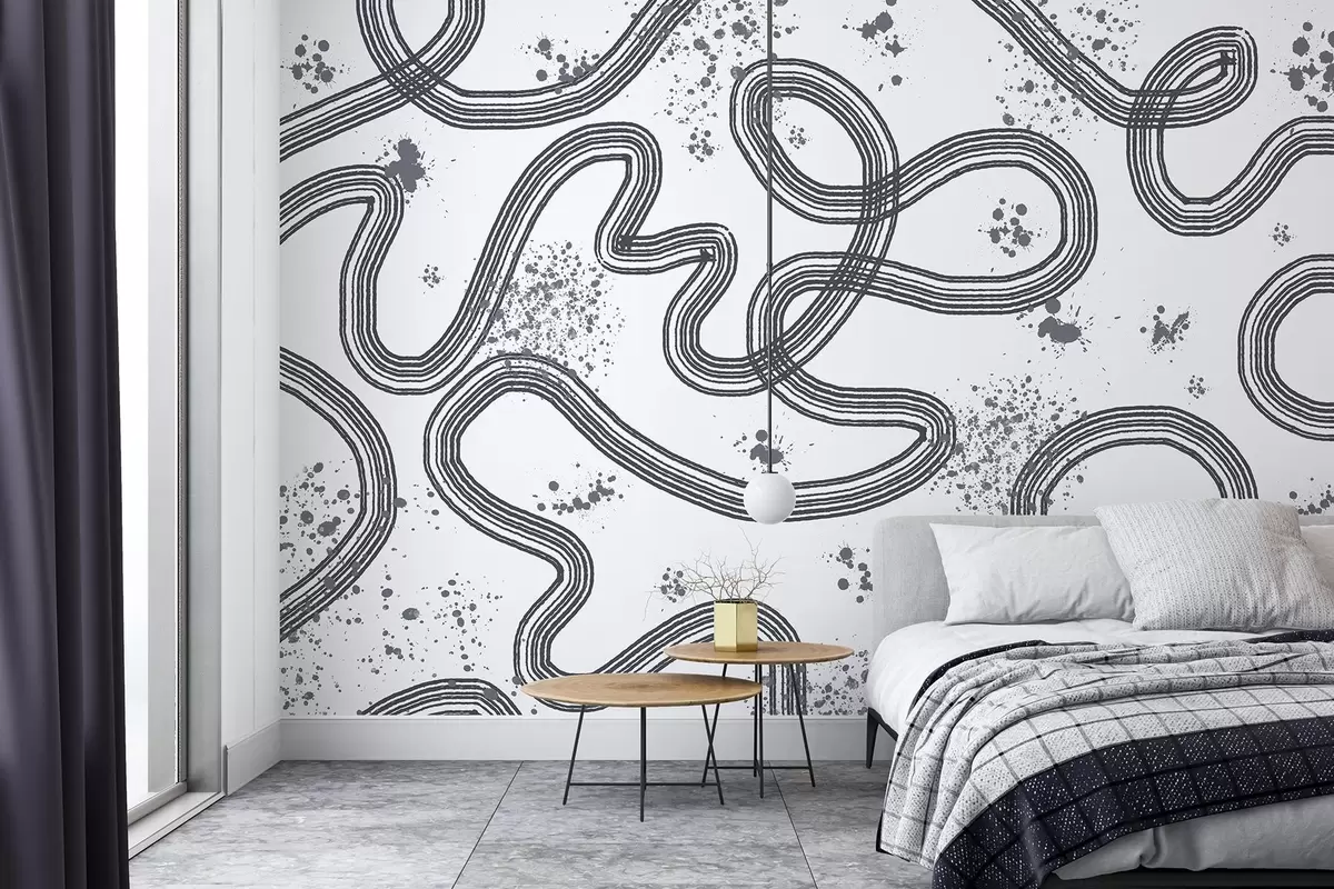 Тапете за зид Линијски цртеж, прскање боје, минимализам, сива боја бр. w03408v2