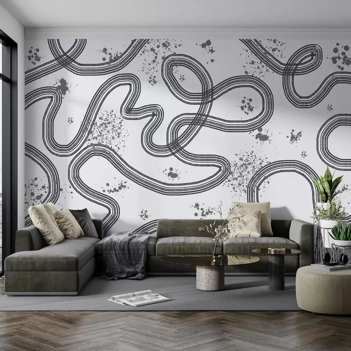Тапете за зид Линијски цртеж, прскање боје, минимализам, сива боја бр. w03408v2