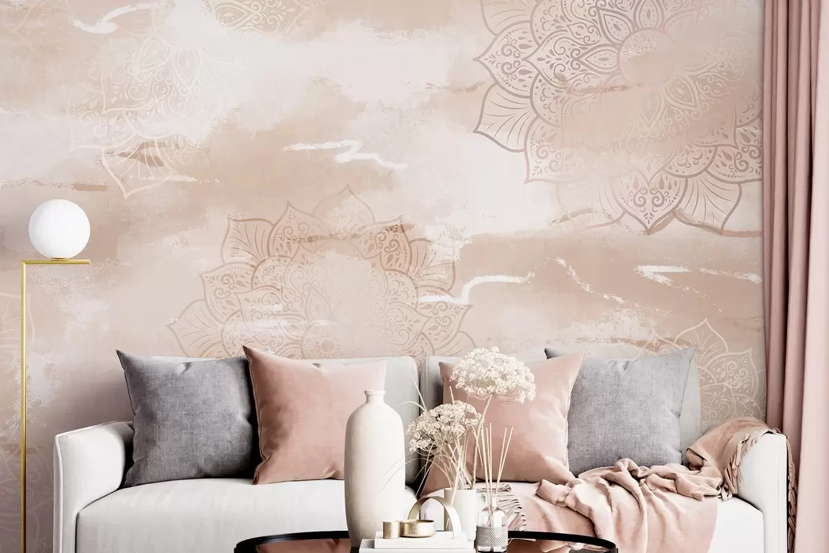 Тапете за зид Мандале на пастелној позадини, живописни потези четкице, беж боје бр. w03409
