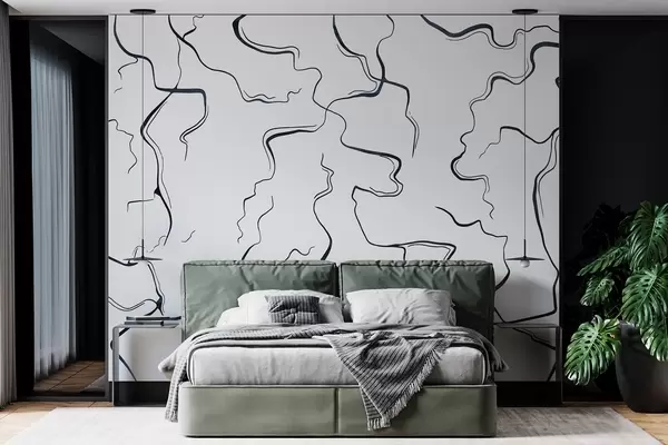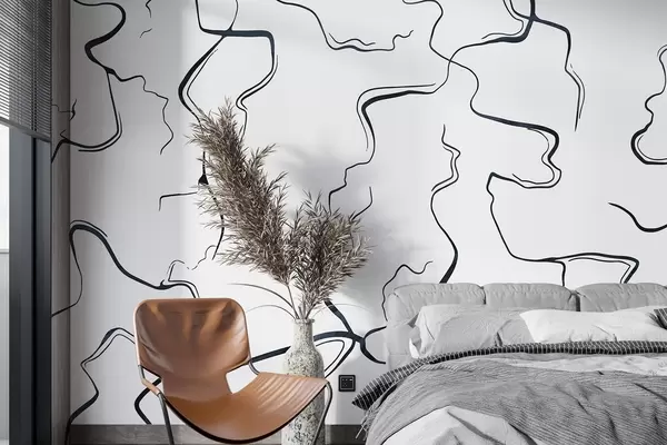 Тапете за зид Геометријске линије, стил мастила, апстракција, сиве боје бр. w03436v2