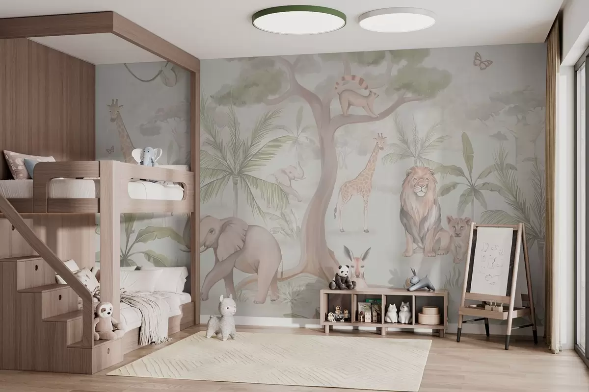 Тапете за зид Панорама џунгле са животињама у светлим бојама бр. w03444v1
