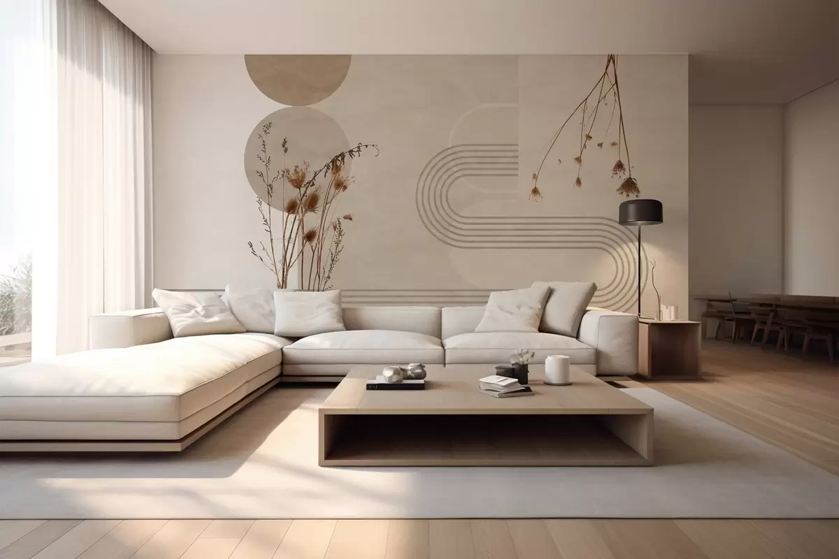Тапете за зид стилска геометрија и суво цвеће у беж тоновима бр. w03449
