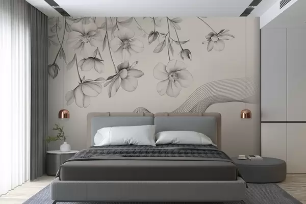 Тапете за зид графичко цвеће и линије на светлој позадини бр. w03454