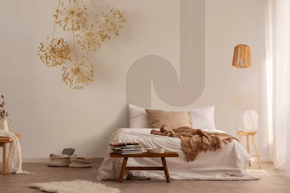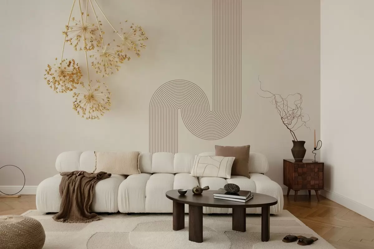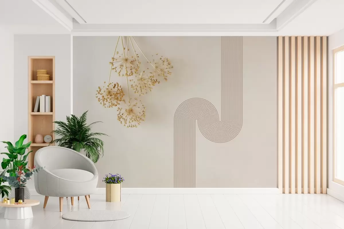 Тапете за зид елегантно суво цвеће и линије у беж тоновима бр. w03455