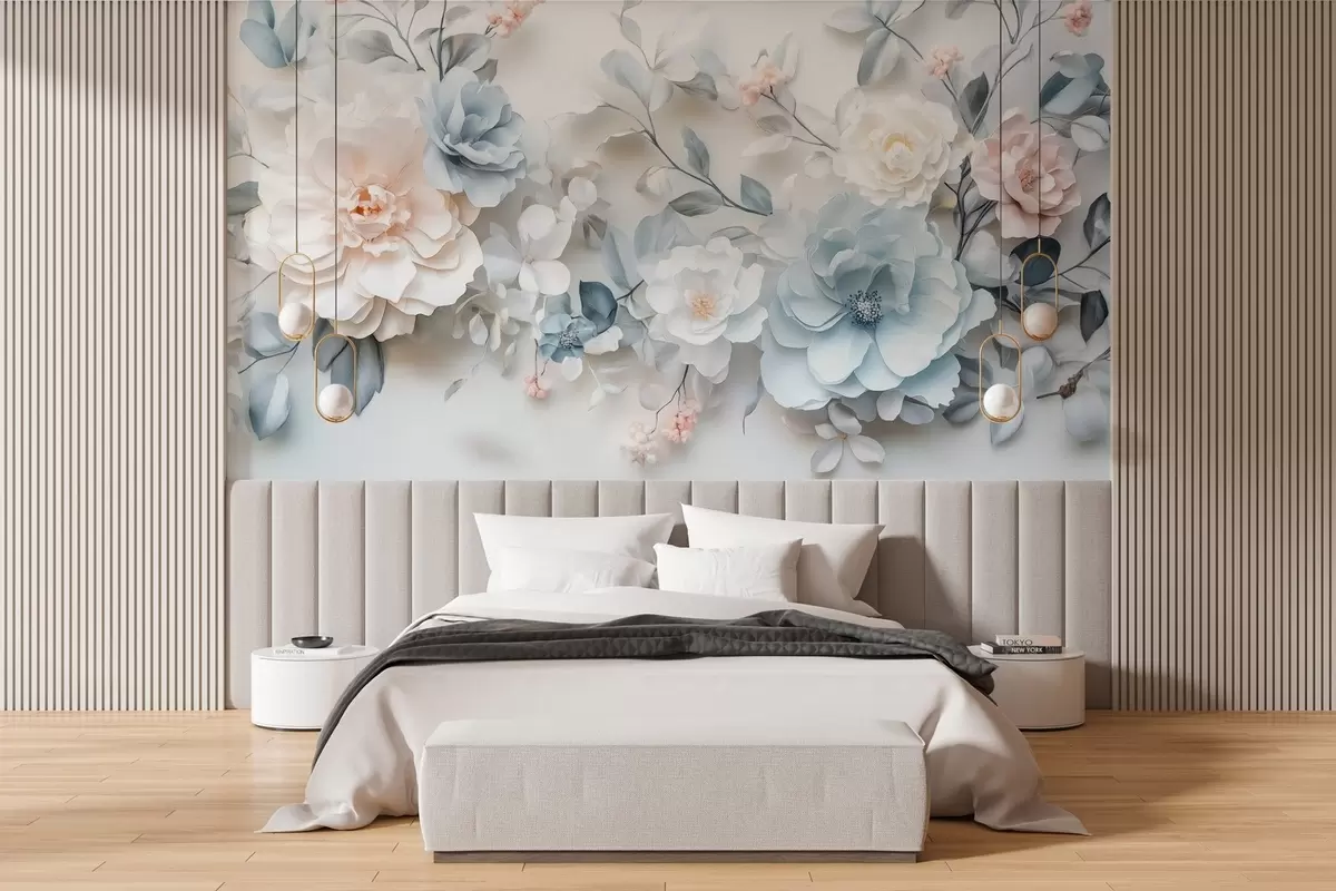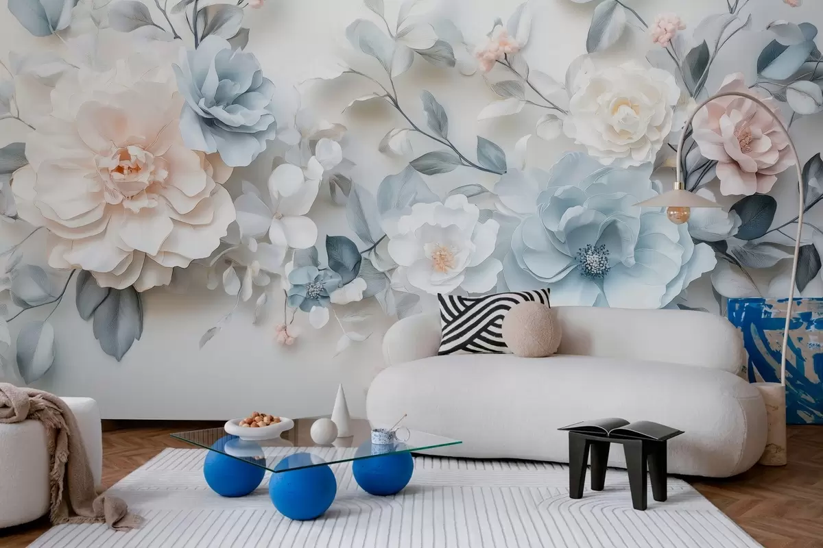 Тапете за зид нежно прозрачно цвеће са ефектом запремине у стилу уљаног сликарства бр. w03457