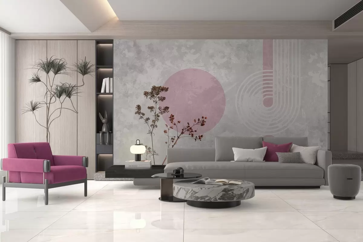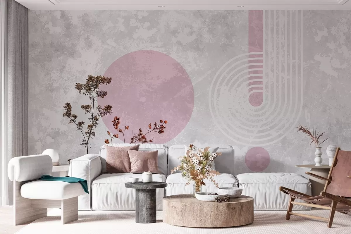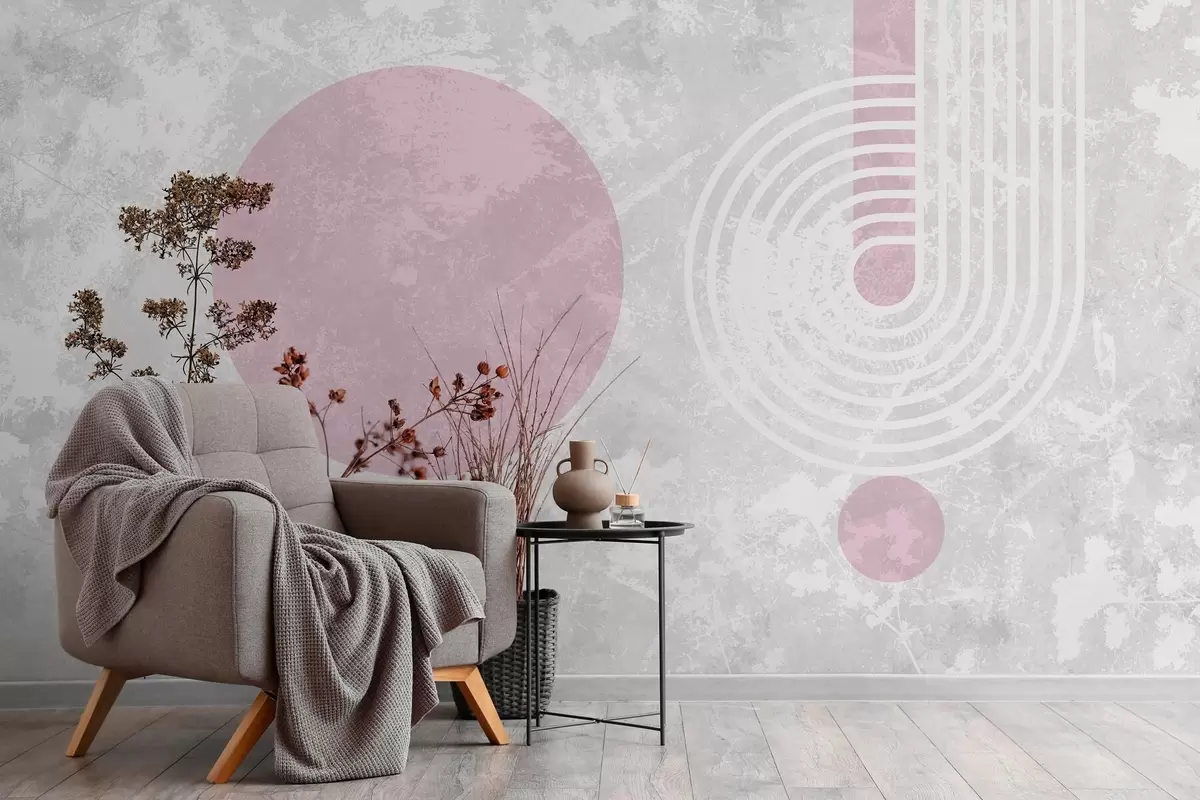 Тапете за зид грунге модерна геометрија са сувим цвећем бр. w03459