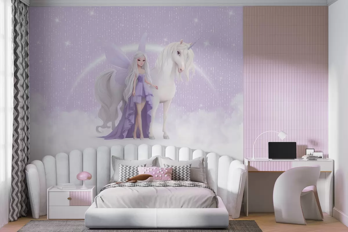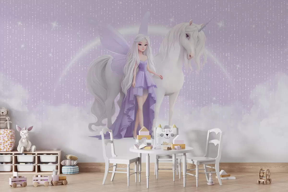 Тапете за зид Вила са једнорогом међу облацима бр. w03527