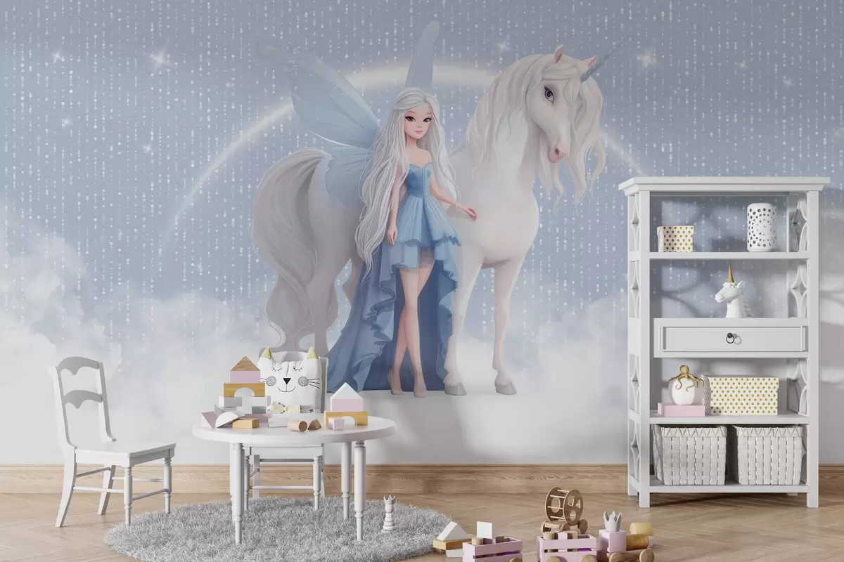 Тапете за зид Вила са једнорогом међу облацима бр. w03527v1