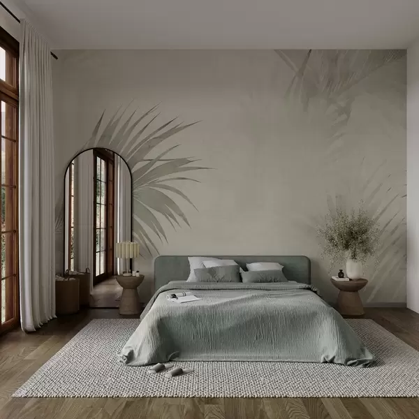Тапете за зид Тропско зелено лишће у магли у грунге стилу бр. w03534v1