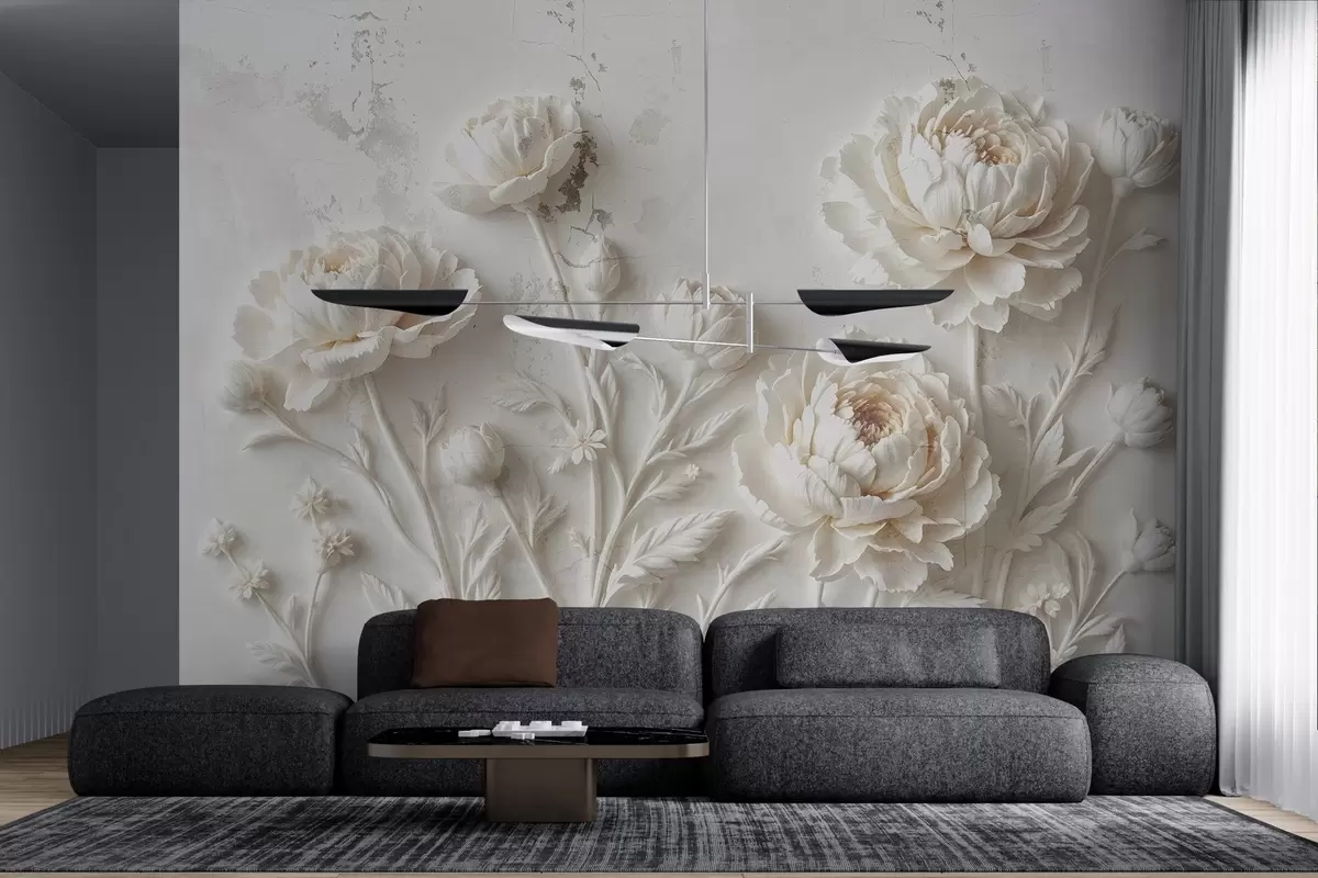 Тапете за зид Цвеће на бетонској позадини грунге стилу бр. w03553