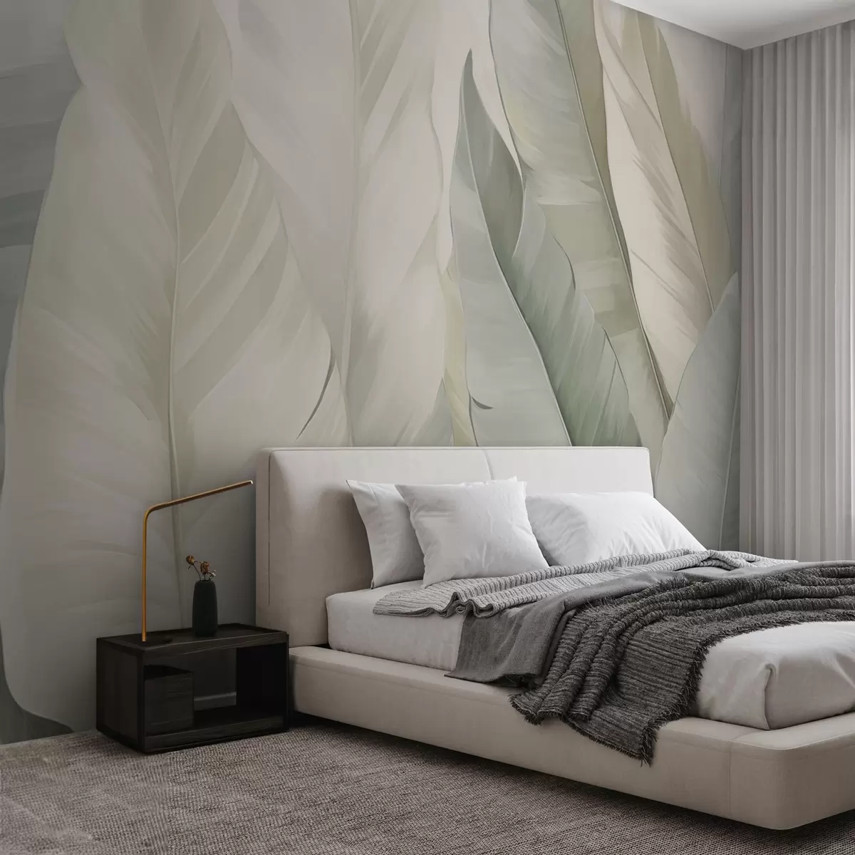 Тапете за зид Зелено деликатно тропско лишће бр. w03598