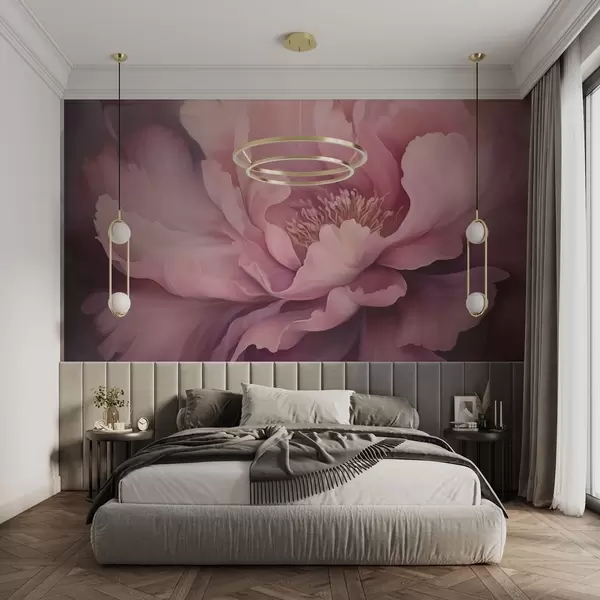 Тапете за зид Пастелно ружичасти цвет божура на магловитој позадини бр. w03600