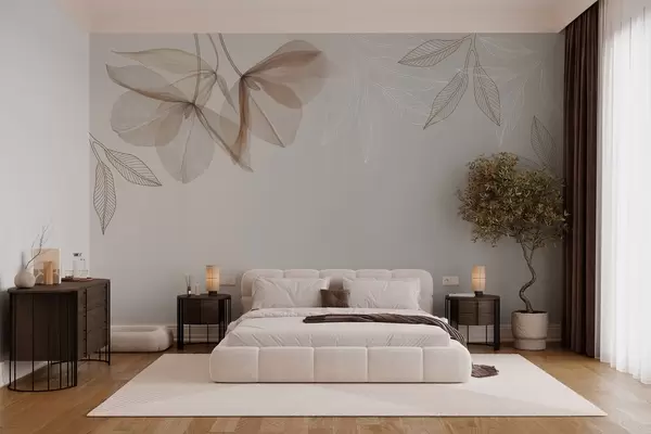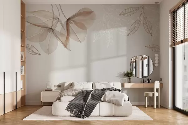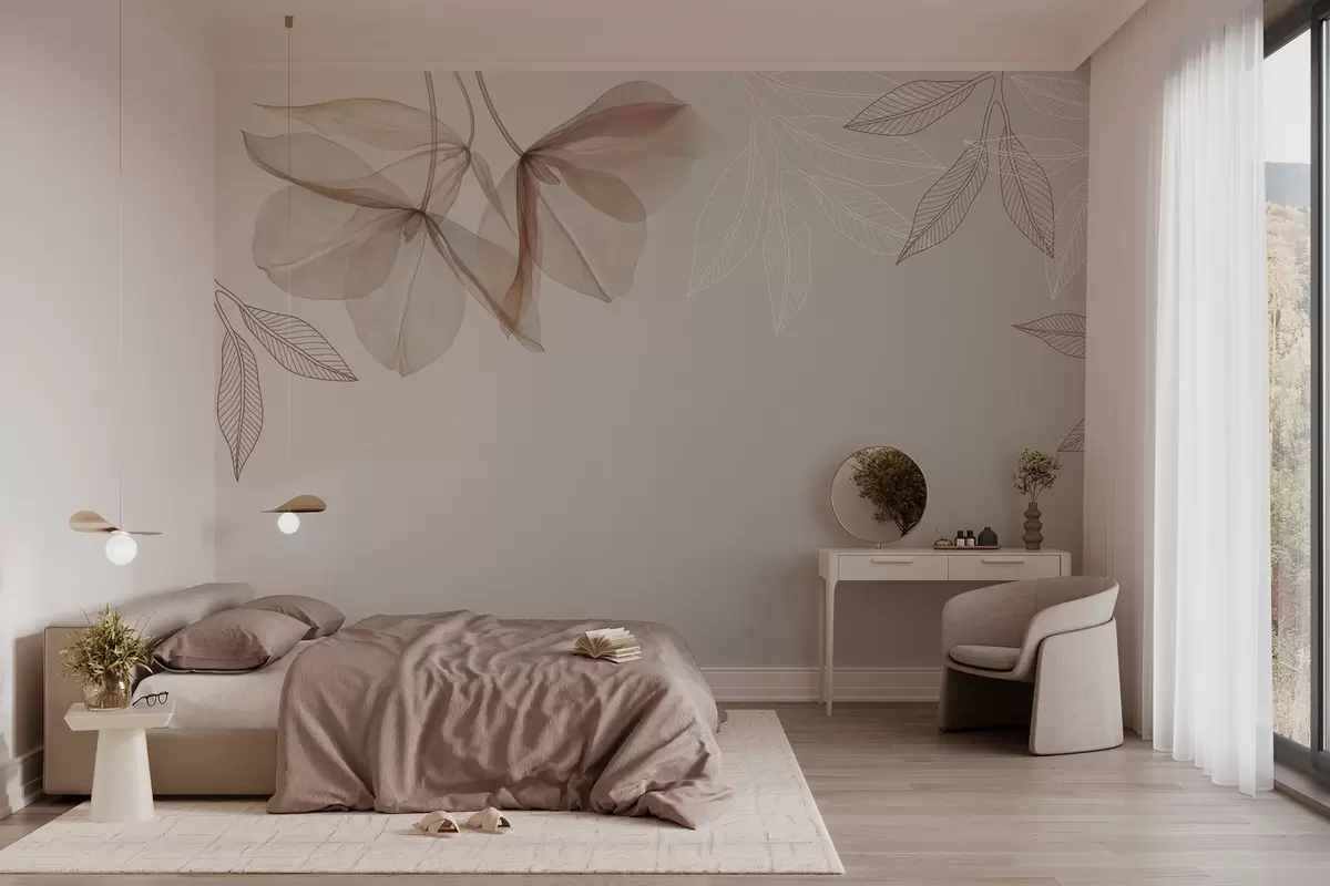 Тапете за зид нежни провидни цветови и листови у тоновима мока бр. w03616v3