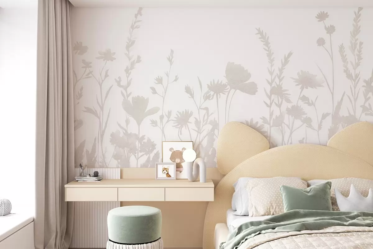 Тапете за зид Летња ливада, рустикална, цвеће, палета беж боја бр. w03670