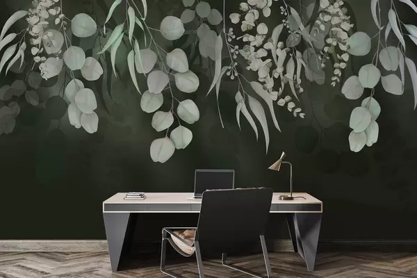 Тапете за зид Тропско лишће на тамнозеленој позадини, цветно бр. w03752